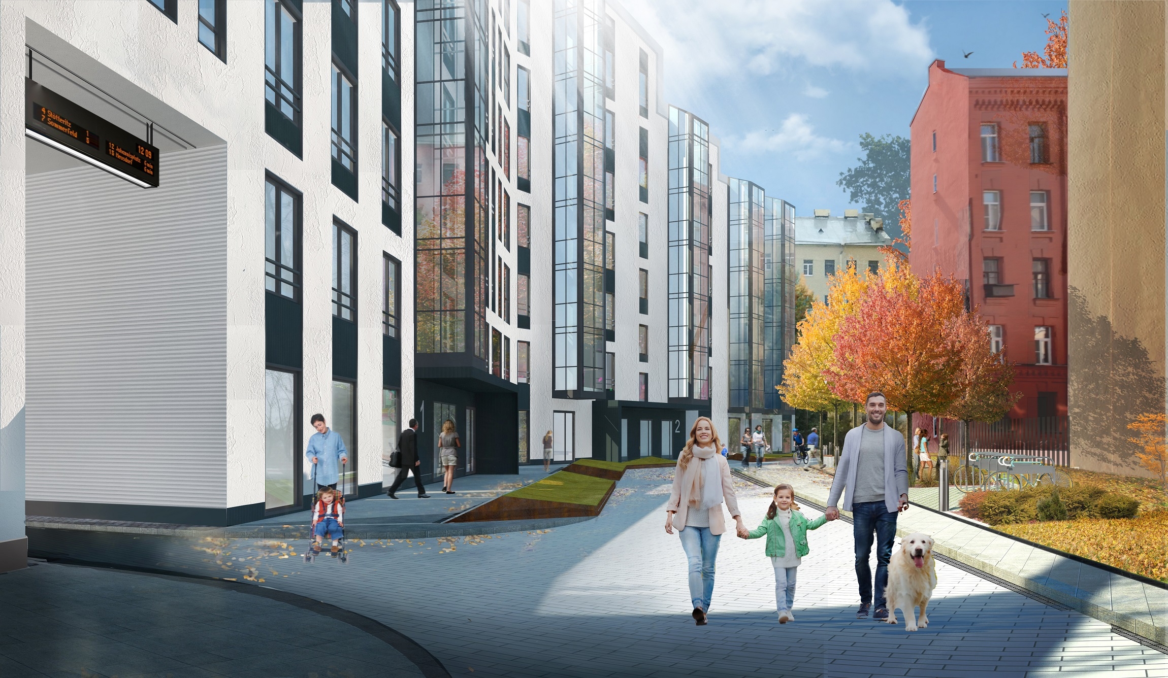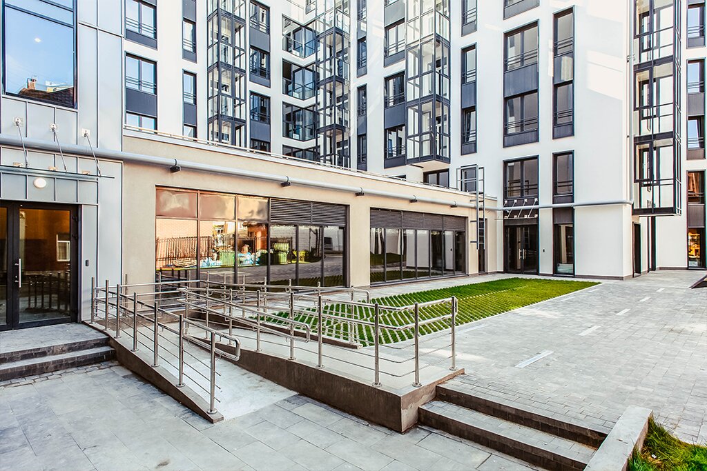 Из объектов инфраструктуры предусмотрен фитнес-центр, паркинг, два бизнес-центра класса В+ и торговые помещения.Два исторических дома реставрируют и откроют в них бизнес-центр класса В+. Офисы будут расположены вдоль улицы Корпусная, а апарт-отель разместят во дворе. Новое здание с реконструируемыми будет соединено галереями, поэтому перемещаться по комплексу можно не выходя на улицу.