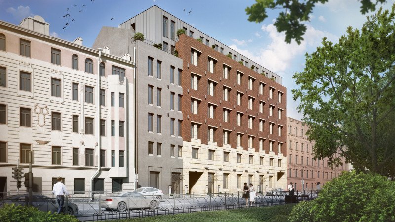 На улице Большая Зеленина в Петроградском районе компания "Строительный трест" намерена возвести многофункциональный комплекс "Grani".